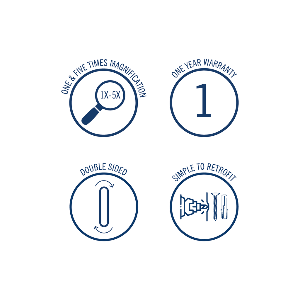 The R16SM magnifying mirror adds style and a sense of beauty to your room. This mirror features a double sided mirror with 5x magnification and normal mirror (no magnification) which can be flipped 360°. This mirror can be folded back out of the way against the wall when not in use or pulled forward with good vertical adjustment to make it easy to use.