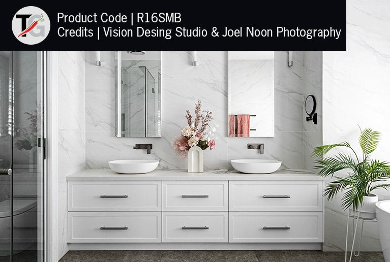 The R16SMB magnifying mirror features a matt black finish and adds style and a sense of beauty to your room. This mirror features a double sided mirror with 5x magnification and normal mirror (no magnification) which can be flipped 360°. This mirror can be folded back out of the way against the wall when not in use or pulled forward with good vertical adjustment to make it easy to use.