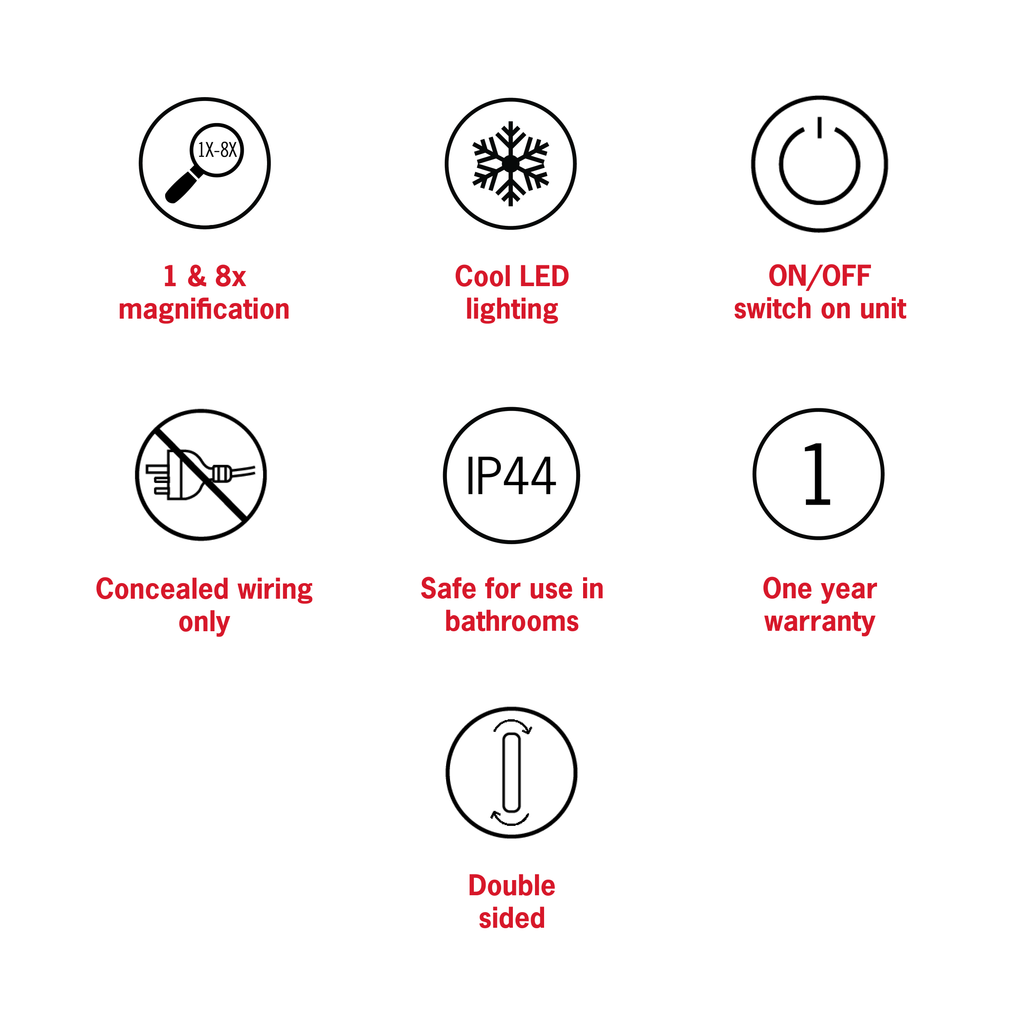 The cool, white LED light is thrown directly onto your face and this coupled with the 8x magnification makes it a perfect option for shaving and make-up applications. The unit features a simple on/off switch on the base of the unit making it simple and easy to control.