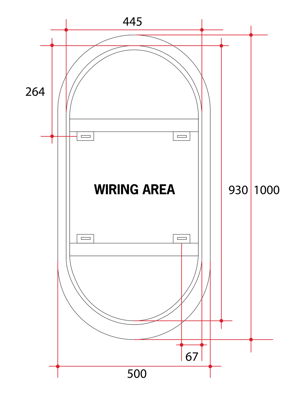 The SO500C features a 5mm silver mirror with a polished edge border. This mirror is designed with a long body and rounded ends to create an interesting and chic design. The lighting is featured at the back of the mirror and shines from behind. The cool lighting casts a bright, white light into your room.