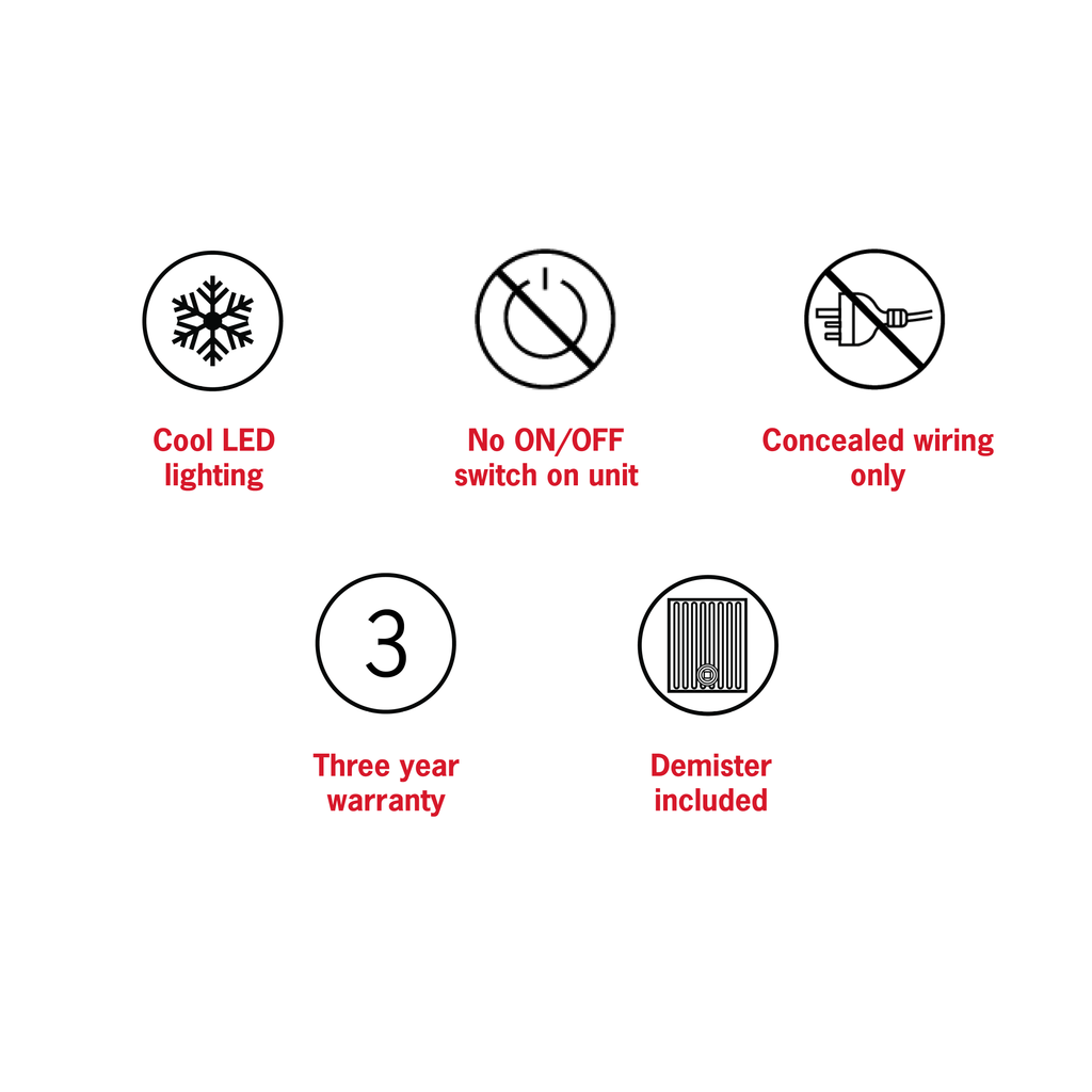 The Ablaze Backlit range mirrors are made to fit your design and space. All of our Ablaze Backlit range mirrors are backed with a 3-year warranty.