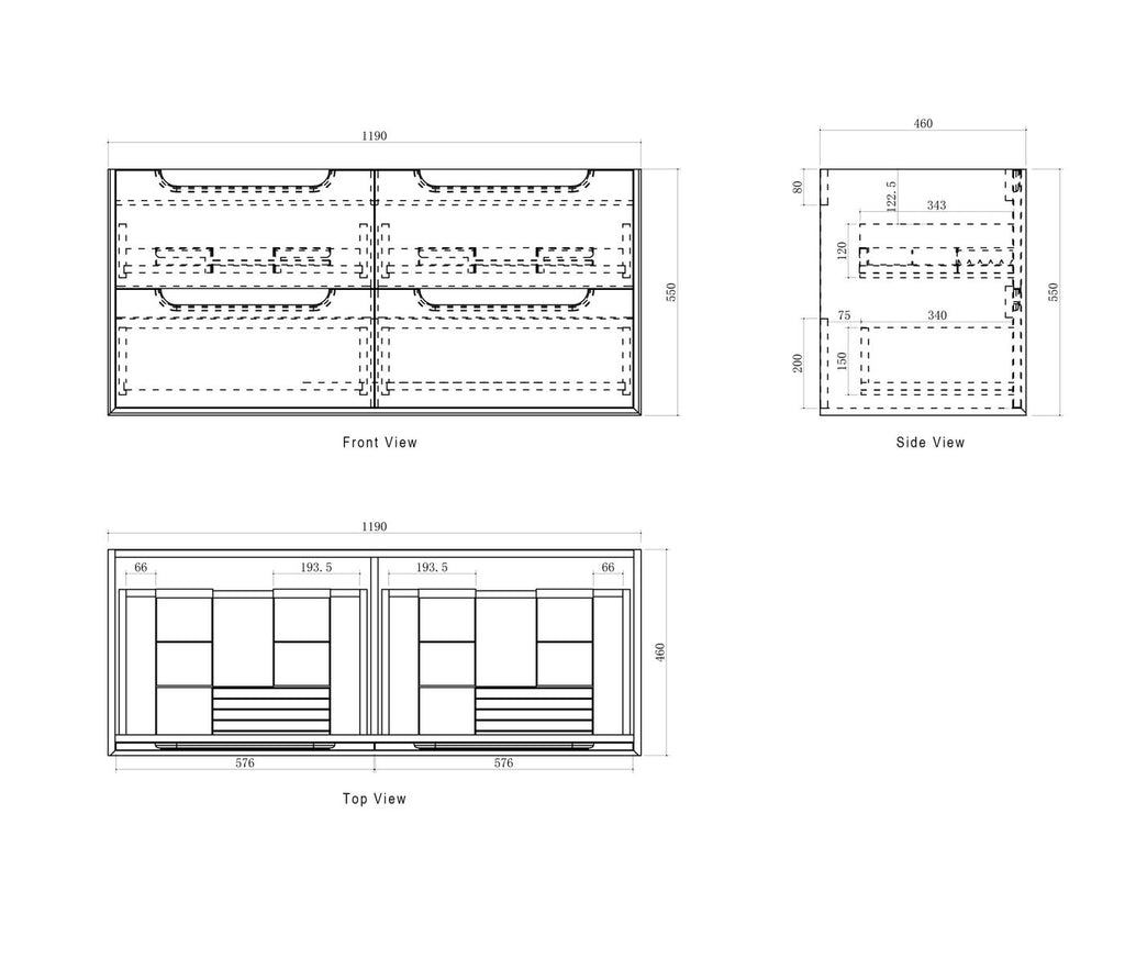 Dimensions 1190x460x550mm