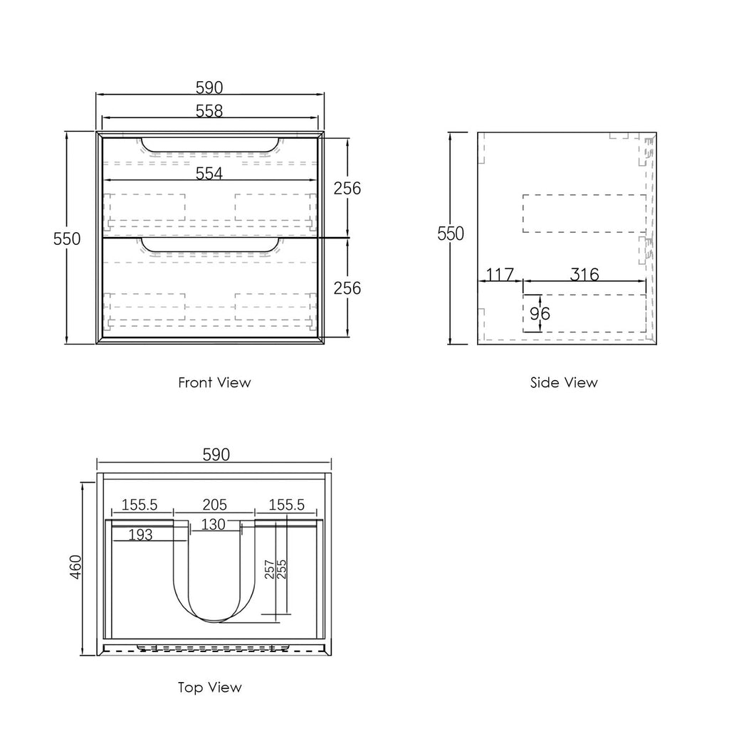 Dimensions 590x460x550mm