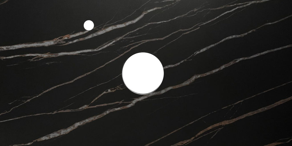 Byron 900mm Black Oak Wall Hung Vanity with Empire Black Top 10TH