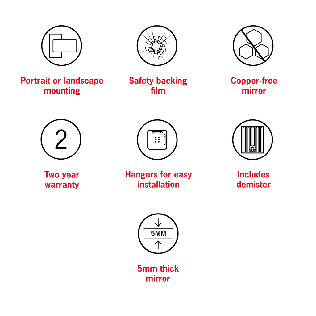 The DP5010GTD includes a mirror demister which is a thin heating pad that is installed behind the mirror to prevent the mirror from fogging up. For more details on mirror demisters click here. Please note the mirror demister is not attached to the mirror but is supplied as two separate components.