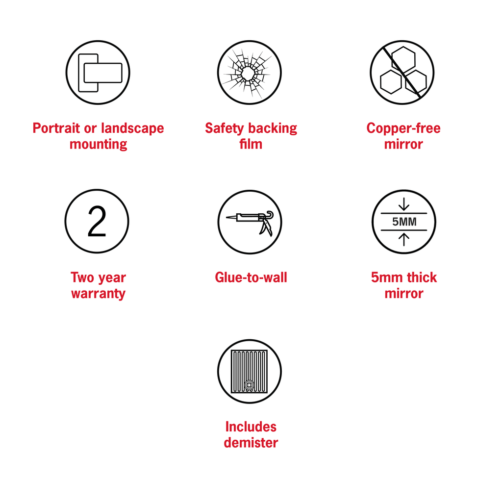 The DP6012GTD mirror is 600mm wide, 1200mm high and only 5mm thick, the mirror can only be mounted in the portrait or landscape position.