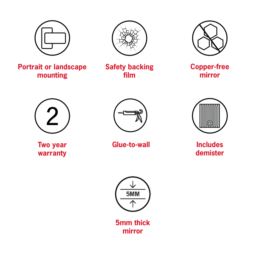 The JS1280GTD Rectangle Mirror from our Jackson Range is made to fit your design, space and budget. These mirrors are backed by our 2 year warranty. The mirrors feature a commercial strength vinyl backing, are copper-free and edged sealed to ensure the mirrors do not develop foil creep on the edge.