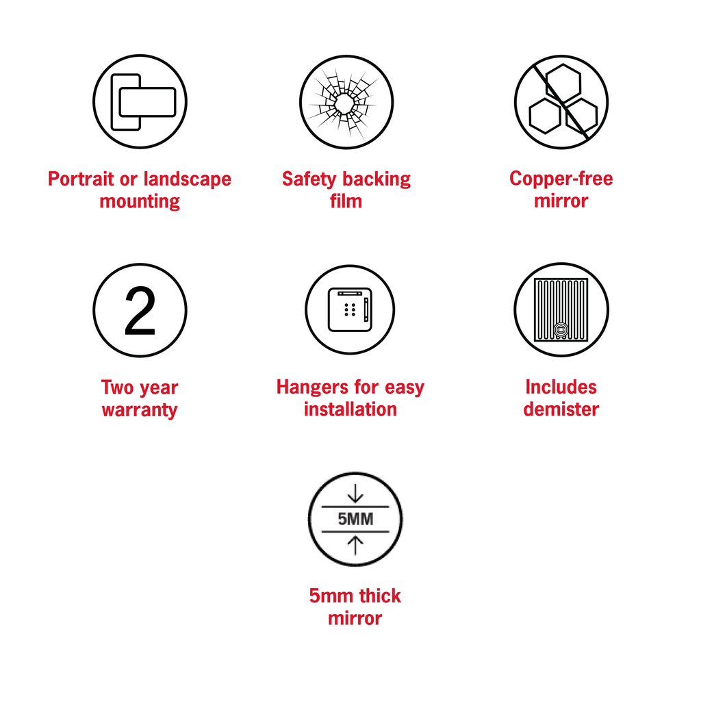 The JS6090HND Rectangle Mirror from our Jackson Range is made to fit your design, space and budget. These mirrors are backed by our 2 year warranty. The mirrors feature a commercial strength vinyl backing, are copper-free and edged sealed to ensure the mirrors do not develop foil creep on the edge.