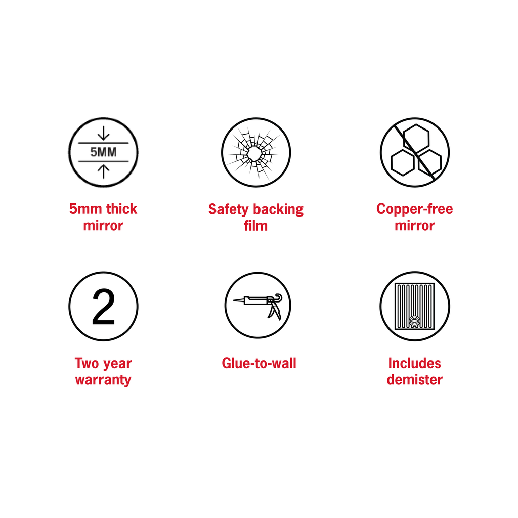 The JS9090GTD includes a mirror demister which is a thin heating pad that is installed behind the mirror to prevent the mirror from fogging up. For more details on mirror demisters click here. Please note the mirror demister is not attached to the mirror but is supplied as two separate components.