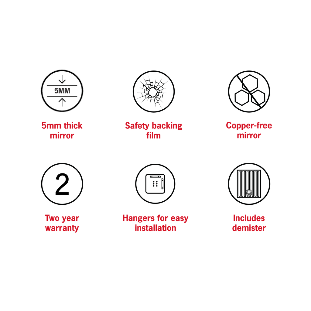 The JS9090HND Rectangle Mirror from our Jackson Range is made to fit your design, space and budget. These mirrors are backed by our 2 year warranty. The mirrors feature a commercial strength vinyl backing, are copper-free and edged sealed to ensure the mirrors do not develop foil creep on the edge.