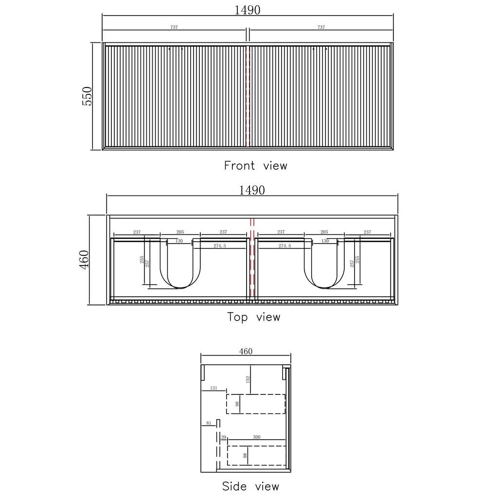 Dimensions 1500x460x550mm