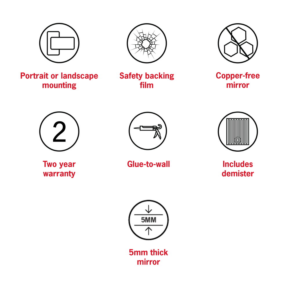 The MS9075GTD Rectangle Mirror from our Montana Range is made to fit your design, space and budget. These mirrors are backed by our 2 year warranty. The mirrors feature a commercial strength vinyl backing, are copper-free and edged sealed to ensure the mirrors do not develop foil creep on the edge.