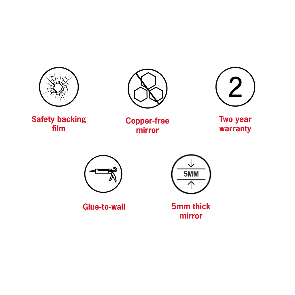 The MS9090GT Rectangle Mirror from our Montana Range is made to fit your design, space and budget. These mirrors are backed by our 2 year warranty. The mirrors feature a commercial strength vinyl backing, are copper-free and edged sealed to ensure the mirrors do not develop foil creep on the edge.