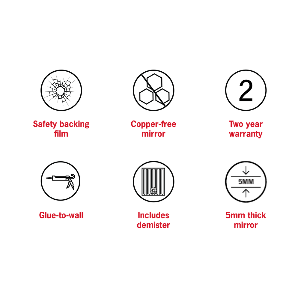 The RR5050GTD includes a mirror demister which is a thin heating pad that is installed behind the mirror to prevent the mirror from fogging up. For more details on mirror demisters click here. Please note the mirror demister is not attached to the mirror but is supplied as two separate components.