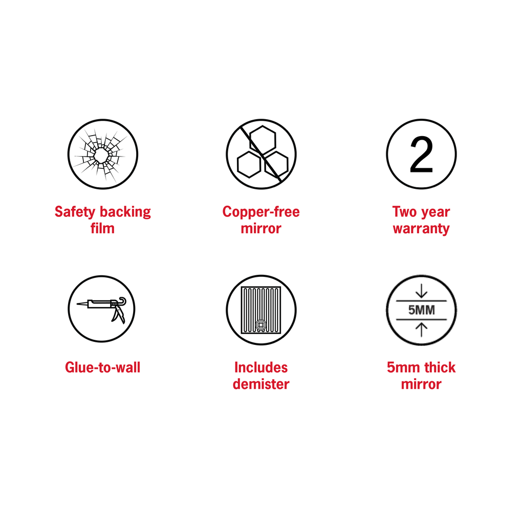 The RR9090GTD includes a mirror demister which is a thin heating pad that is installed behind the mirror to prevent the mirror from fogging up. For more details on mirror demisters click here. Please note the mirror demister is not attached to the mirror but is supplied as two separate components.