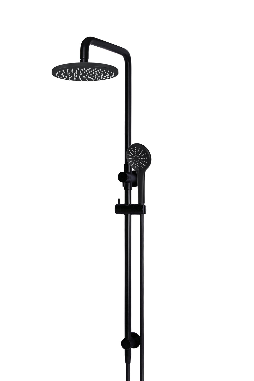 Round Combination Shower Rail, 200mm Rose, Three-Function Hand Shower - Matte Black