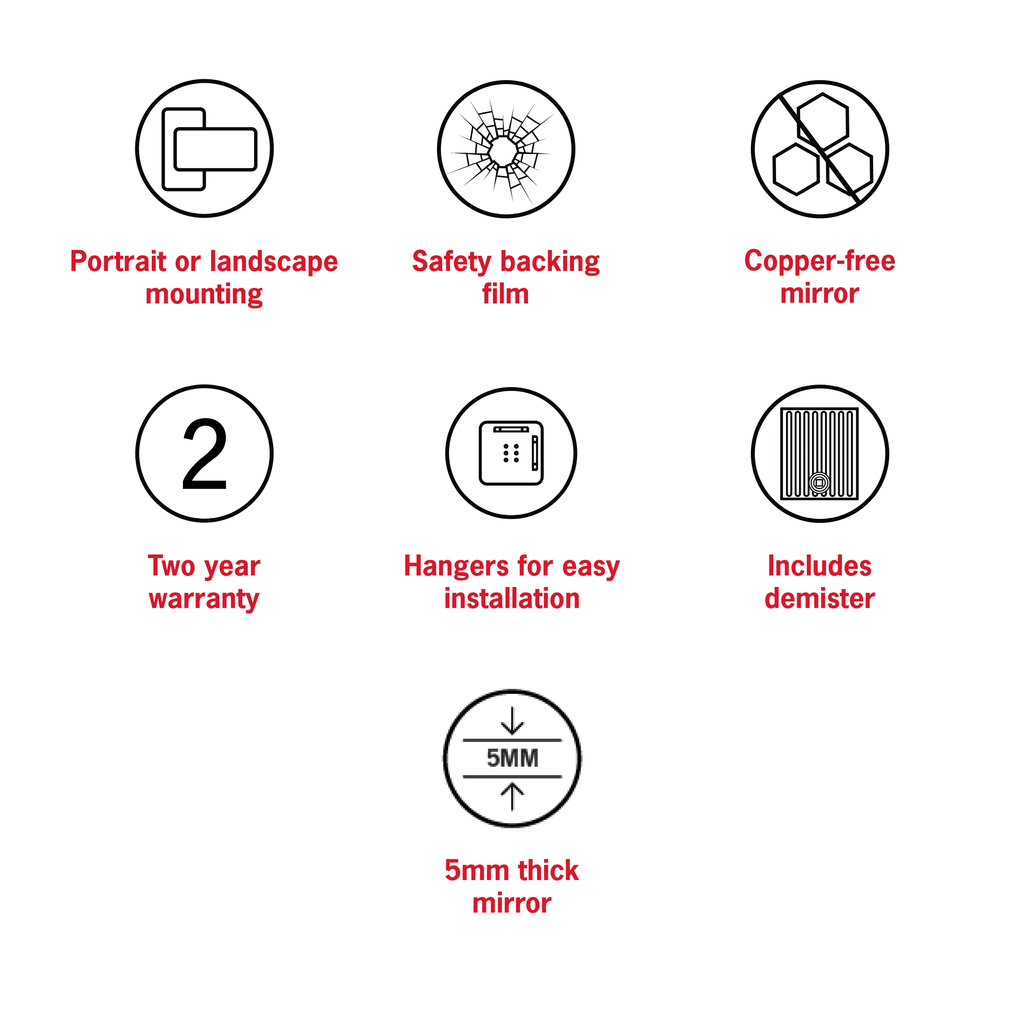 The SS6075HND includes a mirror demister which is a thin heating pad that is installed behind the mirror to prevent the mirror from fogging up. For more details on mirror demisters click here. Please note the mirror demister is not attached to the mirror but is supplied as two separate components.