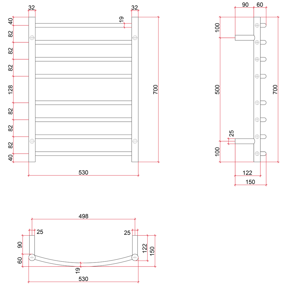 Heated Towel Rails are an affordable luxury for every bathroom for warming and drying your towels. The CR23M Heated Towel Rail is a 530x700 8 bar polished stainless steel ladder rail which features multiflex wiring. The curved rail design provides additional hanging space for the towels between the rail and the wall.