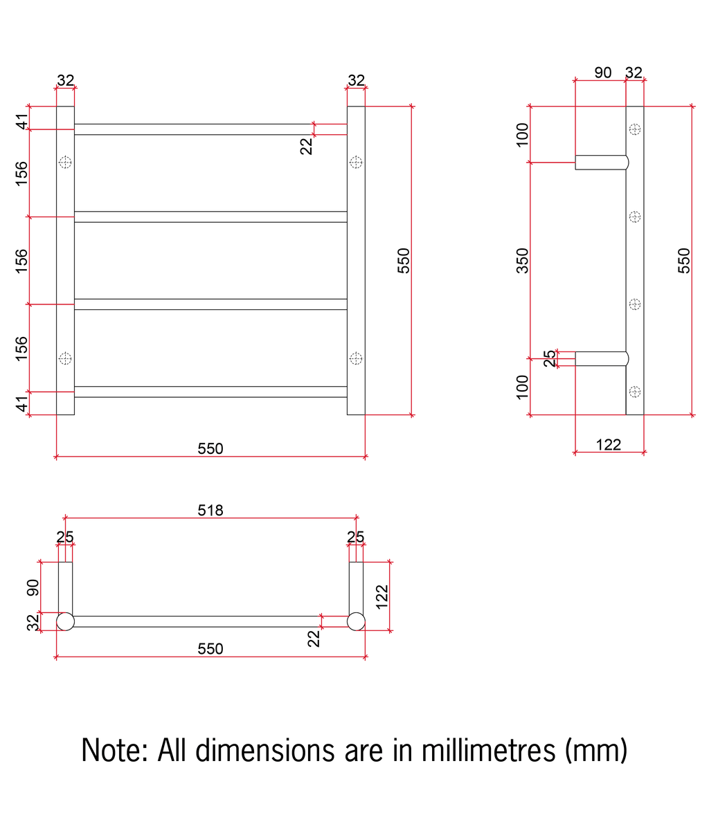 Heated Towel Rails are an affordable luxury for every bathroom for warming and drying your towels. The SRB2512 Heated Towel Rail is a 550x550 4 bar brushed stainless ladder rail.