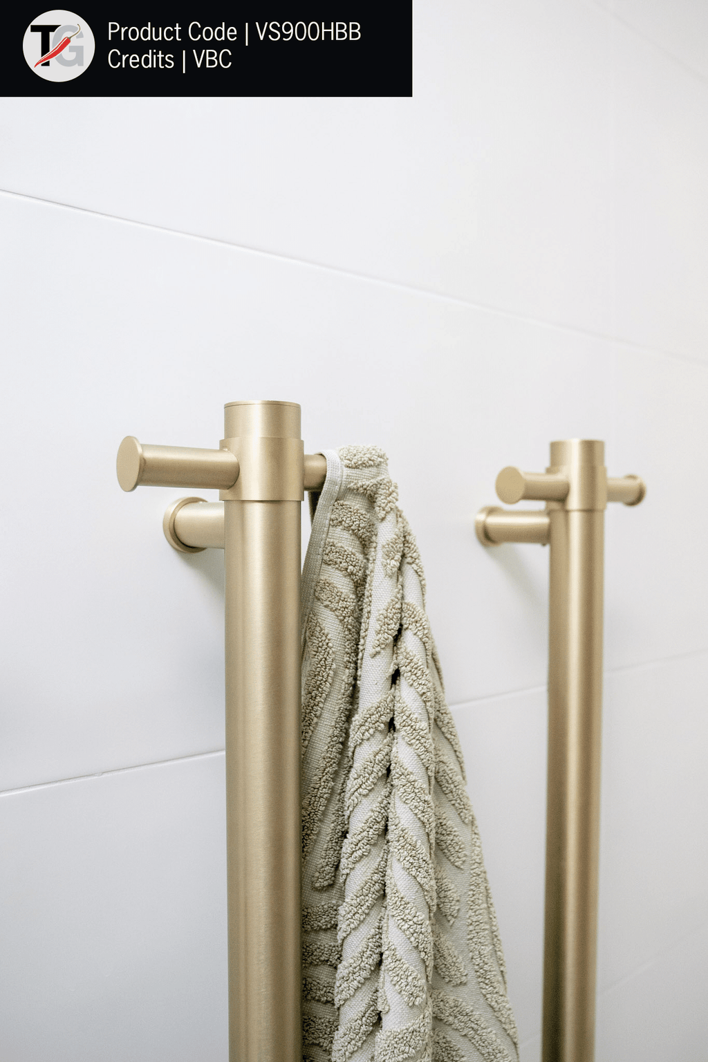 All Thermorail vertical heated towel rails include an optional towel hook that can be fitted on the rail at the time of install. This hook allows for the towel to be more easily hung over the vertical rail. Whilst the vertical rail will assist in drying your towel, it does have less surface contact than a ladder rail and therefore will be less effective in drying and warming your towel than a ladder.