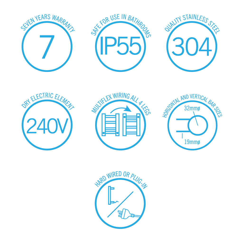 The electric towel rail is designed to rapidly heat up and reach a temperature of around 45-55 degrees. The rail can be operated using an on/off switch however we recommend using a timer to allow you to set and forget and control your running costs. As the rail is electric it is very energy efficient and can cost as little as a $1 a week to run.