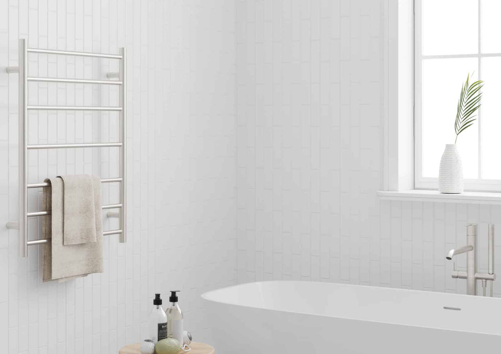 The electric towel rail is designed to rapidly heat up and reach a temperature of around 45-55 degrees. The rail can be operated using an on/off switch however we recommend using a timer to allow you to set and forget and control your running costs. As the rail is electric it is very energy efficient and can cost as little as a $1 a week to run.