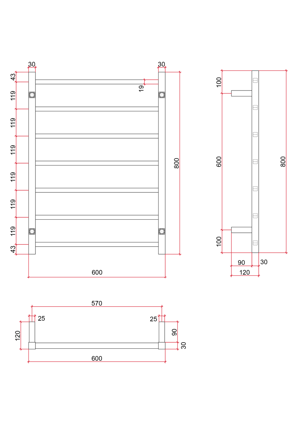 Heated Towel Rails are an affordable luxury for every bathroom for warming and drying your towels. The SS4412 Heated Towel Rail is a 600x800 7 bar polished stainless steel ladder rail.