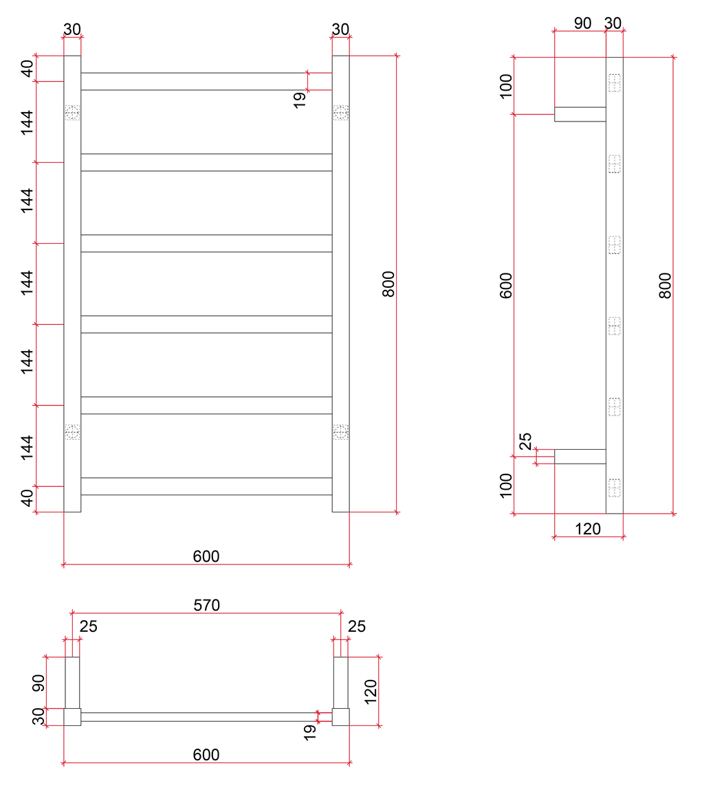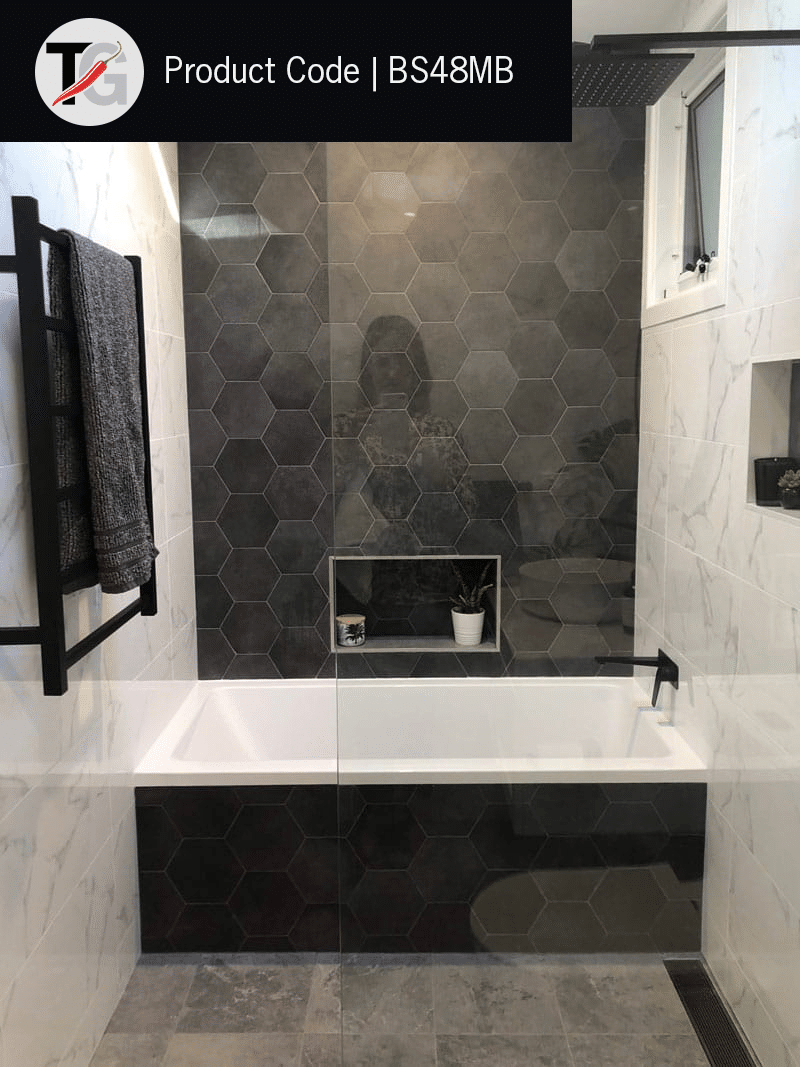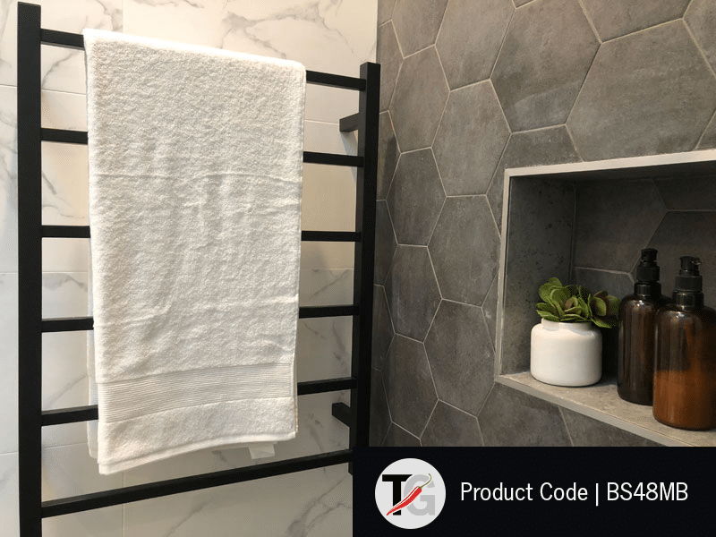 Heated Towel Rails are an affordable luxury for every bathroom for warming and drying your towels. The BS48MB Heated Towel Rail is a 600x800 6 bar matt black ladder rail which features multiflex wiring. The matt black heated towel rail fits in perfectly with your black tapware and is adequate for drying two towels.