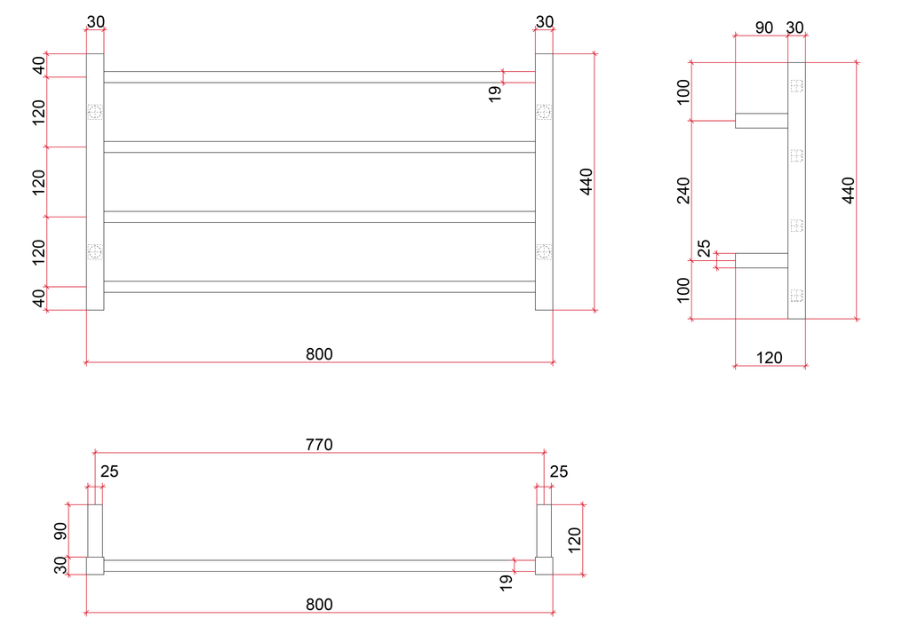 Heated Towel Rails are an affordable luxury for every bathroom for warming and drying your towels. The SS81M Heated Towel Rail is an 800x440 4 bar polished stainless steel ladder rail. The size of the SS81M is ideally suited for areas with minimal overall height such as under a window, whilst still suitable for two towels.
