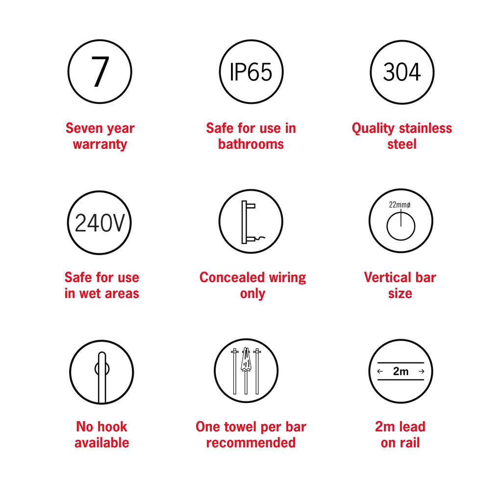 A Heated Towel Rail is an affordable luxury for every bathroom. The Thermorail VT Vertical Heated Towel Rails offer a stunning design feature for the bathroom, featuring a slimline design with a stylish mount. Along with the stylish design, the rails are designed to help dry your towel and create a design statement in your bathroom, particularly with limited wall space. The matt black finish of the VTH900B matches perfectly in with your black tapware.